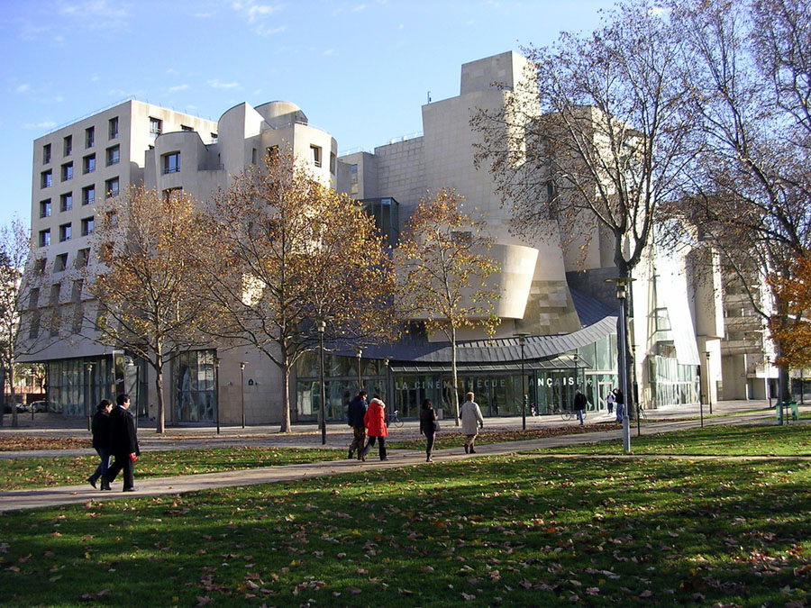 The Cinémathèque Francaise holds large archives of film documents and film-related objects. It is located in Bercy district in a postmodern building designed by Frank Gehry, an American architect who designed Fondation Louis Vuitton. The archive has daily screenings of world films. A restaurant on the lower level is open to the public. Cinema in Paris.